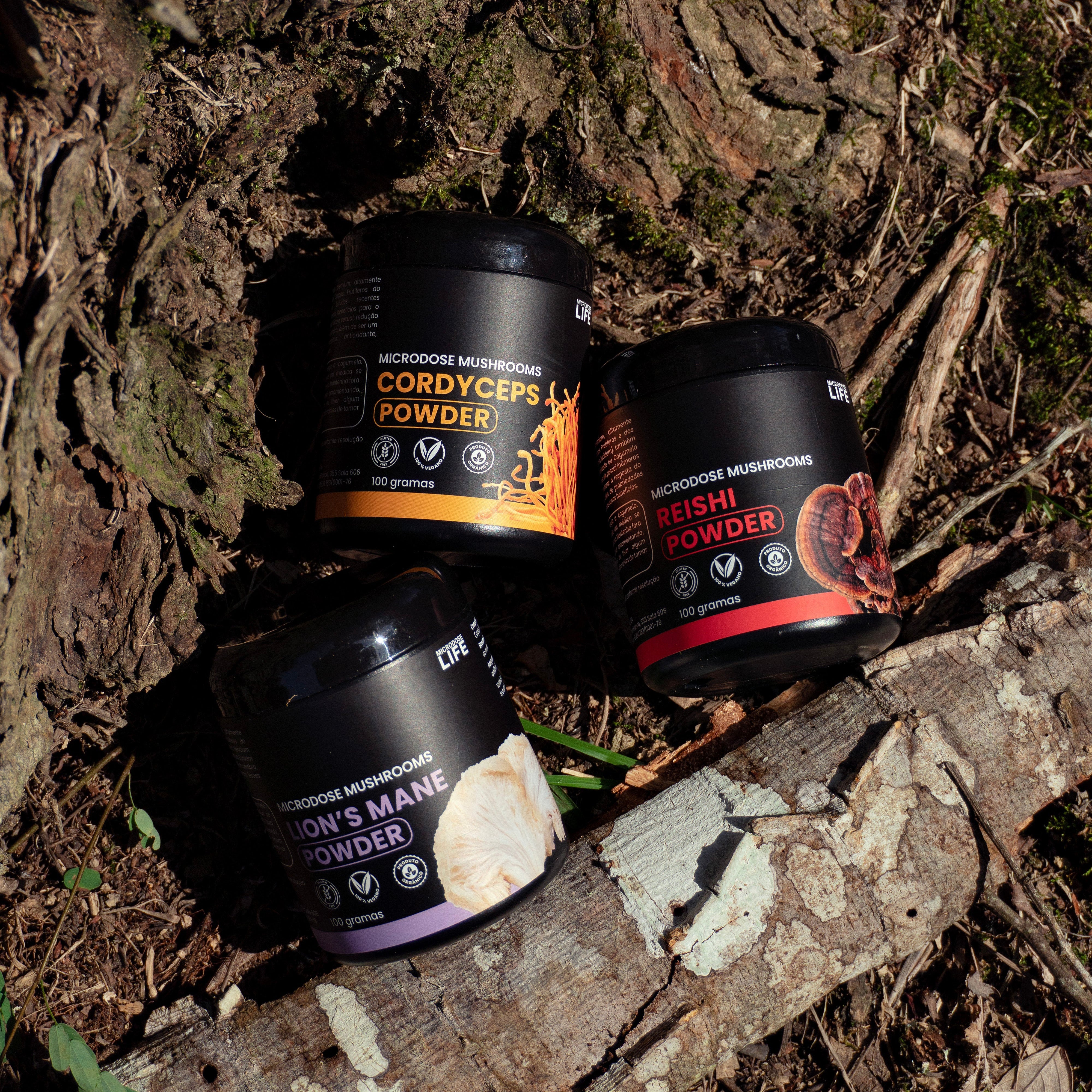 Kit Foco, Energia e Equilíbrio Lion's Mane + Cordyceps Militaris + Reishi | Extrato em Pó 100gr